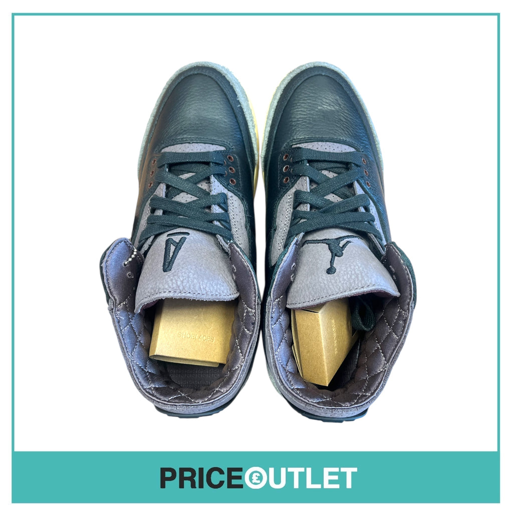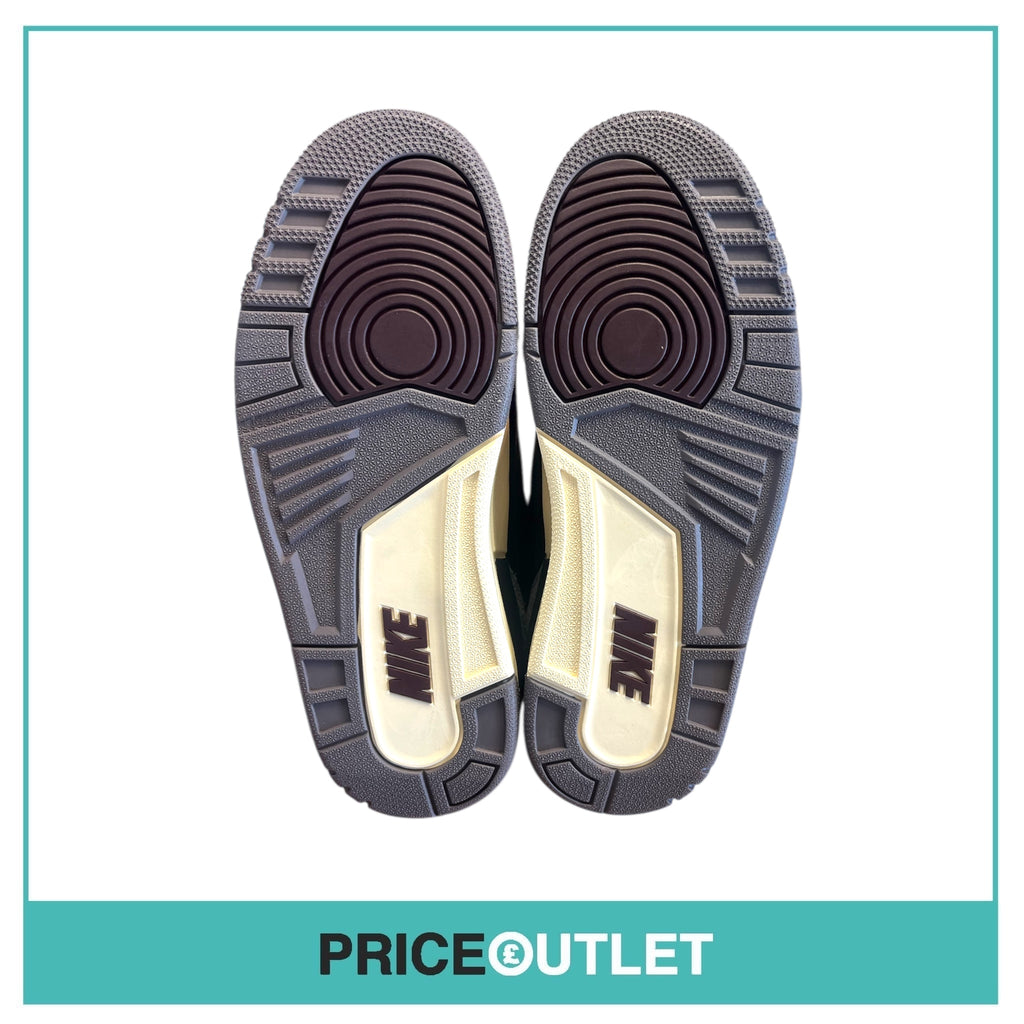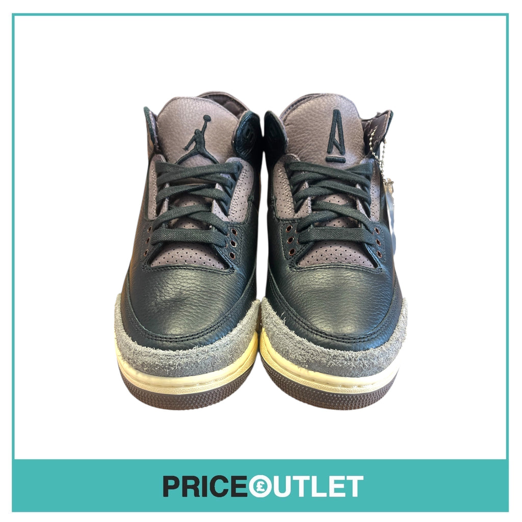 Step up your sneaker game with these A Ma Maniére x Air Jordan 3 Flat Pewter kicks. With a sleek black design and flat pewter accents, these UK 8 shoes add style and flair to any outfit. Perfect for sneakerheads and fashionistas alike. Grab them now!
