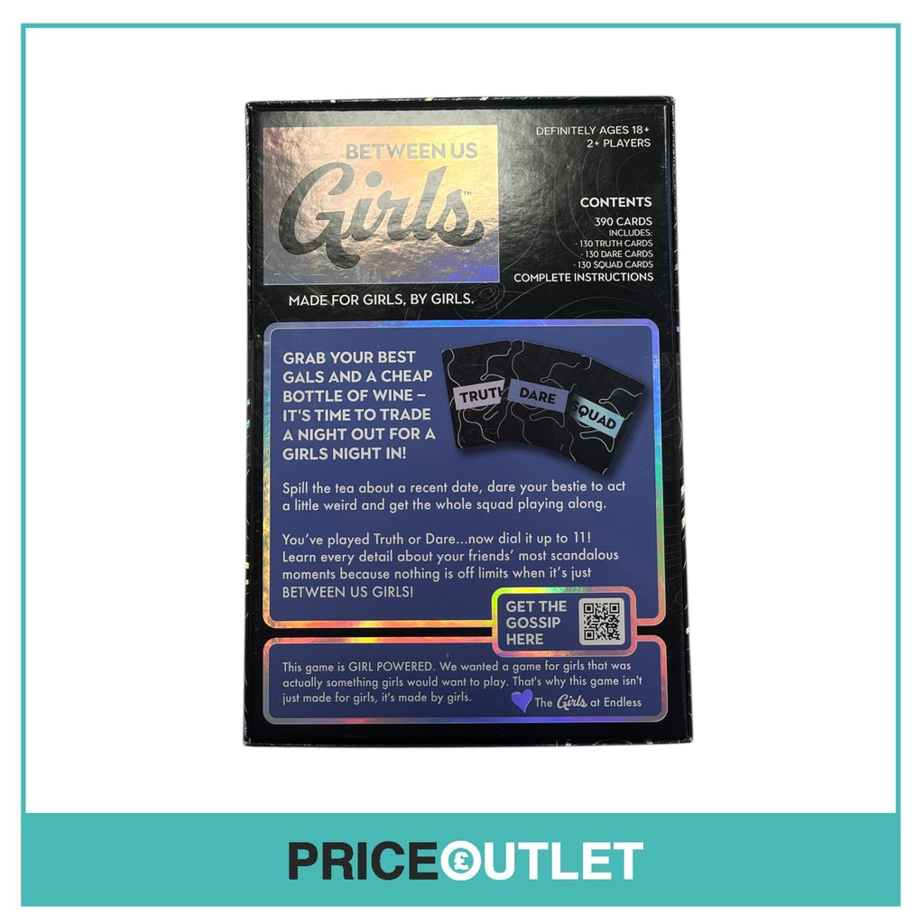 Get ready for laughter, bonding, and unforgettable conversations with Between Us Girls — the ultimate card game for women! Perfect for girls’ nights, parties, or get-togethers. This brand new, factory-sealed game is all about sharing stories, secrets, and laughs.