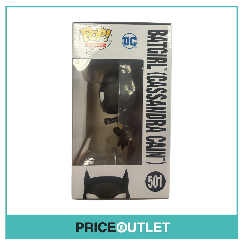 Add the fierce and mysterious Cassandra Cain as Batgirl to your Funko Pop! collection with this #501 vinyl figure. Featuring her sleek black costume and iconic masked look, this collectible captures the stealthy vigilante in classic Funko style.