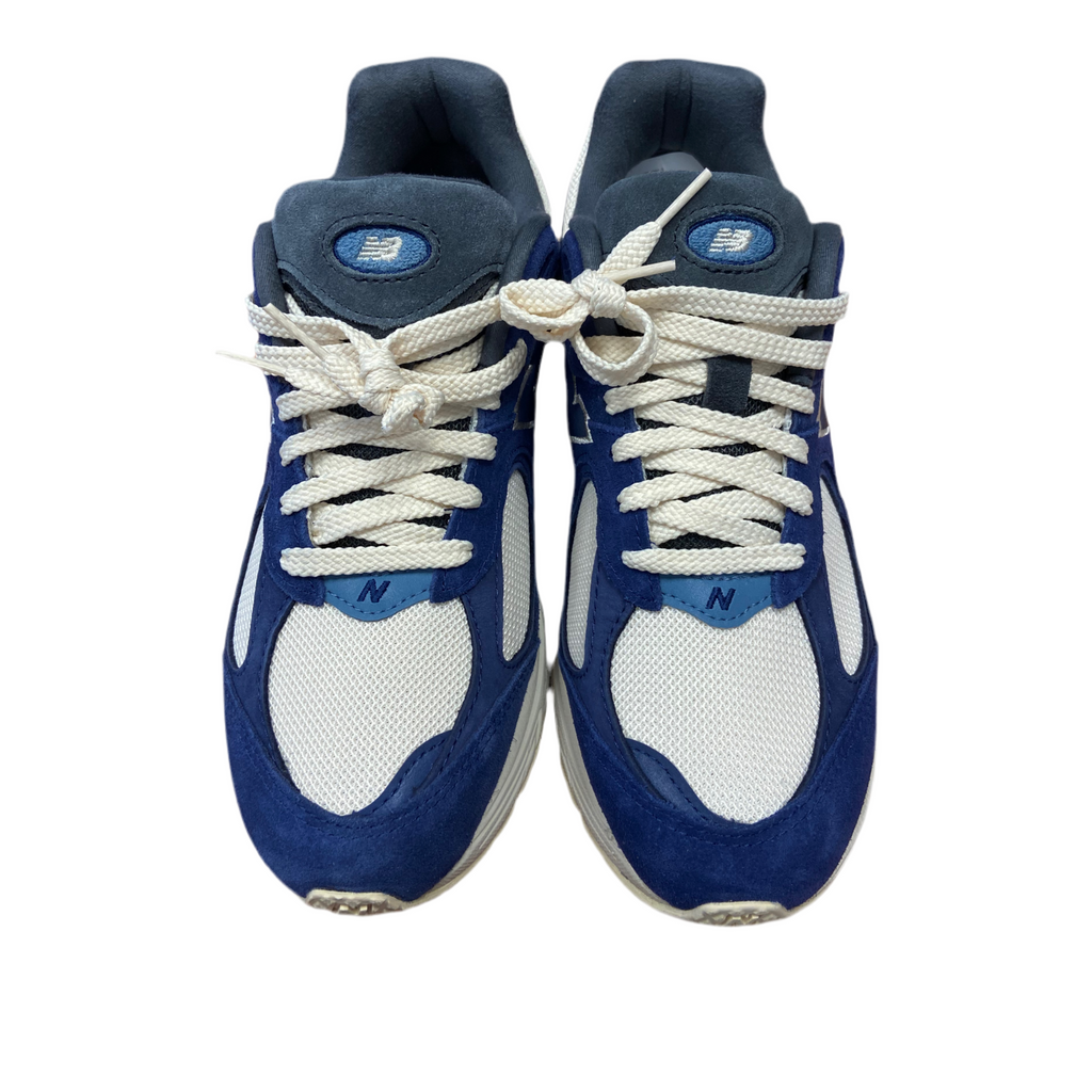 With its cream breathable mesh panels decorated with premium navy suede, the New Balance 2002R Navy Cream is a muted staple engineered for everyday wear. This rethought NB shoe features a perforated brown overlay at the heel and updated sole formation, as well as padding at the collar for ultimate levels of comfort. Covered with classic New Balance branding, such as the “N” symbols on the toe cap and sidewall and the printed model name on the side of the heel, this pair is a proud variation of this classic silhouette. Elevated by deep blue hues and textural elements, the New Balance 2002R Navy Cream is the very definition of a must-have sneaker.