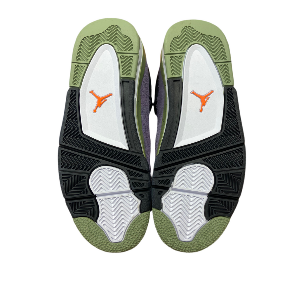 The women’s Air Jordan 4 Retro ‘Canyon Purple’ treats Tinker Hatfield’s 1989 design to a comprehensive makeover. Replacing the shoe’s traditional leather or nubuck build, the upper is crafted from shaggy suede in a vibrant purple finish. Lime green accents land on the speckled eyelets and midsole, while the signature Jumpman logo graces the woven tongue tag in Safety Orange. The bright hues are offset by contrasting hits of black on the molded wings, Jumpman-embossed heel tab, and herringbone-traction rubber outsole.