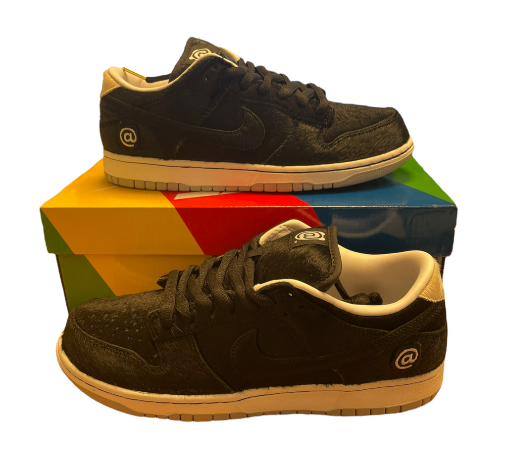 A Colossal collaboration between Nike SB and Japanese collectable maker Medicom Toy. Medicom toys are most famously known for their be@rbrick creations which have become a favourite amongst streetwear and sneaker collectors. The SB Dunk is decked out in a combination of black pony-hair and faux fur to give the sneaker the appearance of a bear. The shoe has striking white branding throughout to contrast the mostly black colourway. The iconic Medicom logo can be found on both the heel tabs and the tongue. The usual Dunk characteristics that made us fall in love with the sneaker are ever-present, the padded ankles and perforated toe boxes both feature. A distinct white sole features on this classic, housing Nike Air technology ensuring that the shoe remains comfortable. We are confident that the Medicom Toy x Nike SB Dunk will continue to push the hype of the Dunk to unparalleled levels. These are a must-have for your collection.