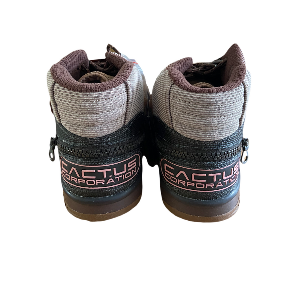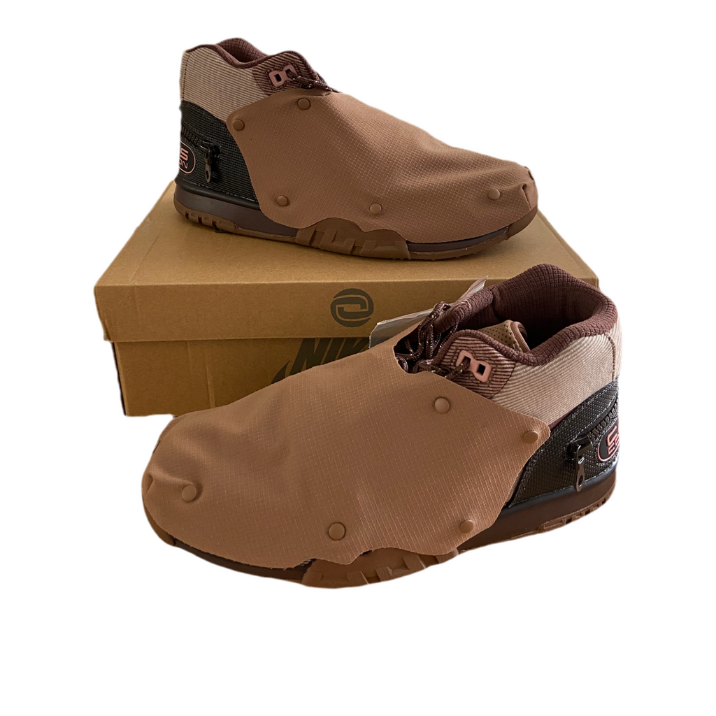 The Travis Scott x Nike Air Trainer 1 SP ‘Wheat’ debuts the Cactus Jack rapper’s take on the iconic cross-training shoe from 1987. Rope laces, along with an adjustable midfoot strap, secure a slate blue leather upper with contrasting tan leather overlays at the forefoot and heel. The latter is accented with Cactus Jack branding, while Scott’s signature reverse Swoosh decorates the lateral quarter panel in a vibrant coral hue. The mid-top rides on a brown foam midsole with encapsulated Nike Air cushioning.