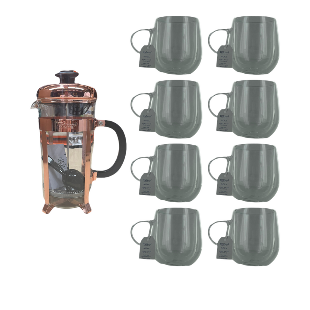 Whittard 8 Cup Cafetière + 8 x Whittard Nova double walled mug